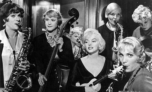 Probablemente la mejor comedia de la historia del cine. Dirigida por el maestro Billy Wilder ( ganador de 5 Oscars- tres como guionista y dos como director - ) la película es una gozada por la que no pasan los años y que narra la historia de dos músicos ( desternillantes Curtis y sobre todo Lemmon ) de Chicago, que tras presenciar el asesinato de unos gánsters a manos de otra banda rival ( la famosa matanza del día de San Valentín ocurrida en 1929 ) huyen a la soleada y veraniega Florida disfrazados de mujer ocultos en una orquesta femenina en la que canta la voluptuosa Sugar ( la siempre sensual Marilyn)